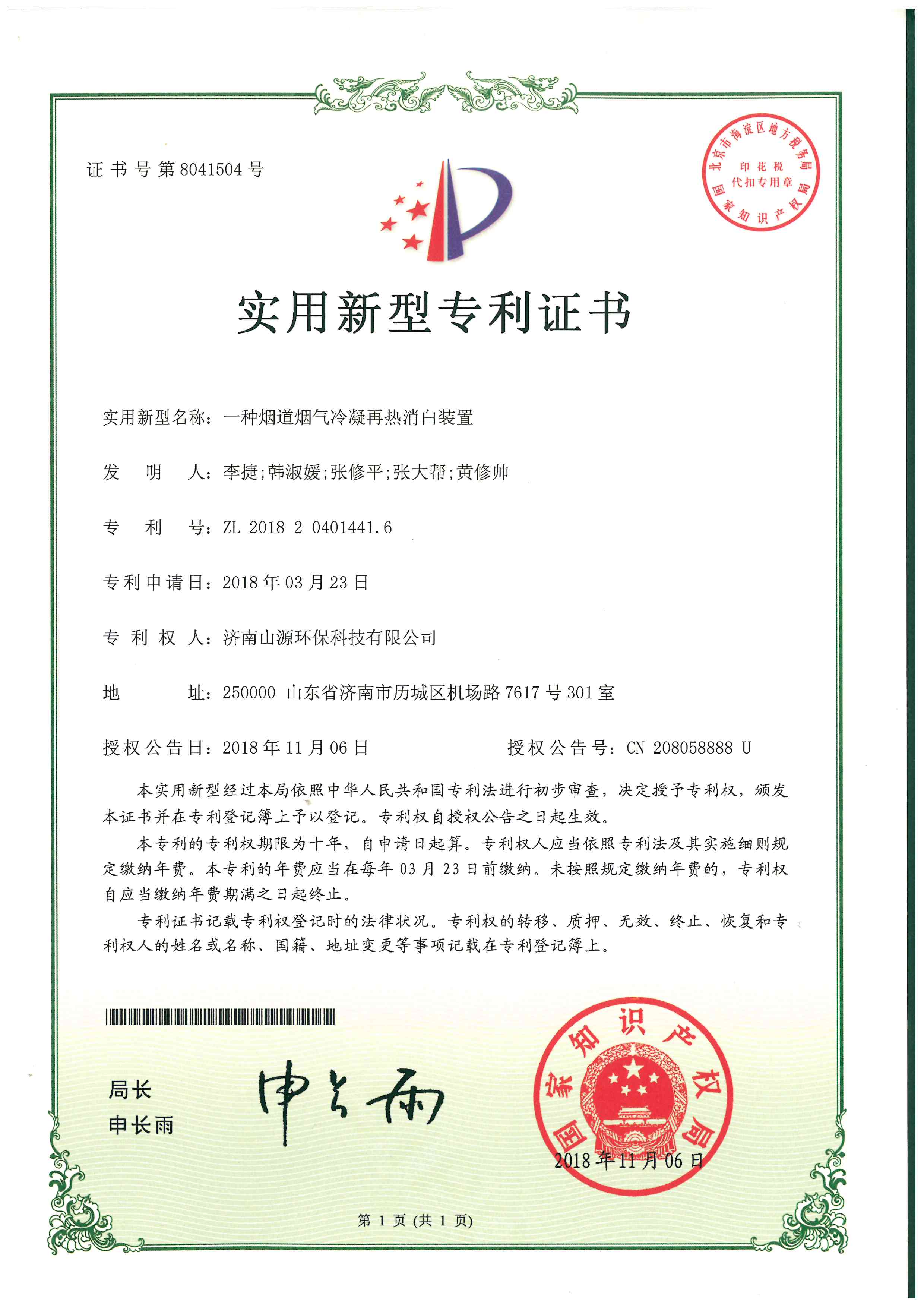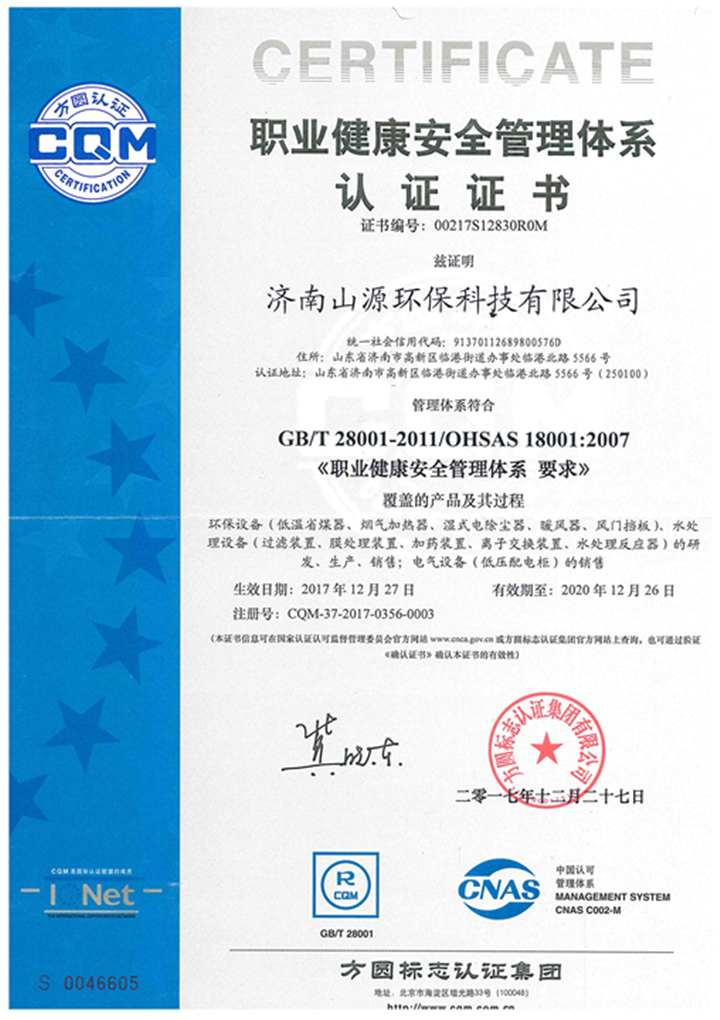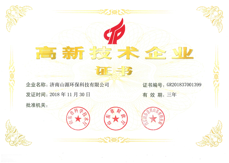 濟南山源環保科技有限公司順利通過ISO9001質量體系認證,環境體系認證,職業健康體系認證等。取得國家多項煙氣余熱、水處理、廢水零排等技術研發專利。憑借專業的技術團隊、強大的制造規模、豐富的工程實戰經驗,公司先后被評為高新技術企業、“守合同重信用企業”、“環境保護產業協會理事單位”,榮獲節能先進企業”、環保行業“突出貢獻企業”等榮譽稱號。公司設有專業技術研發中心,并被認定為濟南市市級“技術中心”,先后與中科院工程熱物理研究所、西安交通大學、上海交通大學、東北電力大學、山東大學等高校合作,共同研究開發國內外節能減排新技術、新裝備,并積極與多家國際公司技術合作不斷引進國外先進技術和設備。